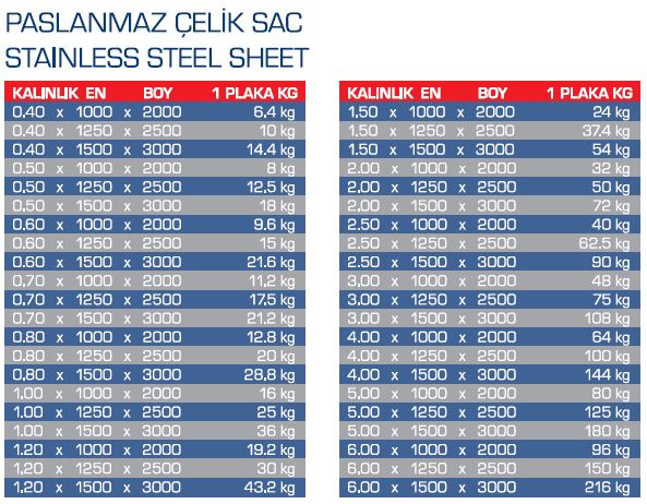 Ülkemizde tüketimi en yaygın olan 304-304L-301- 316-316L-430-310-309 kalite paslanmaz çelik levha malzemeleri farklı yüzey standartları ile stoklayan firmamız geniş stok kapasitesine sahiptir.