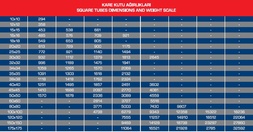 Paslanmaz çelik uzun mamuller olarak 304 ve 316 kalite profil, dikişli boru, dikişsiz boru, lama, kare, altıköşe, mil stoklarımızda bulunmaktadır.