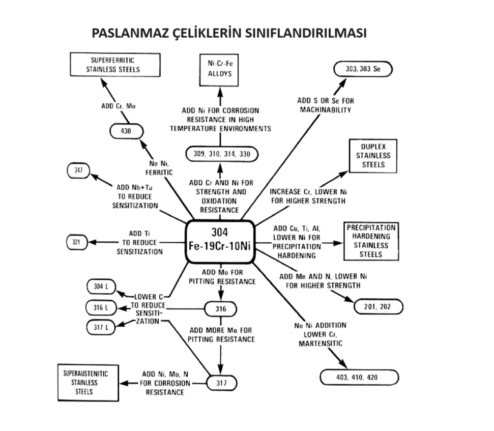 “Çözelti tavlaması” ifadesini duyabilirsiniz. Bu sadece, tanecik sınırlarına çökmüş (veya hareket etmiş) karbürlerin tavlama işlemi ile metalin matrisi içinde çözeltiye geri döndürüldüğü (dağıtıldığı) anlamına gelir. Boru ve bağlantı parçalarının kaynaklandığı alan gibi kaynak sonrası tavlamanın pratik olmadığı durumlarda “L” kaliteleri kullanılır.